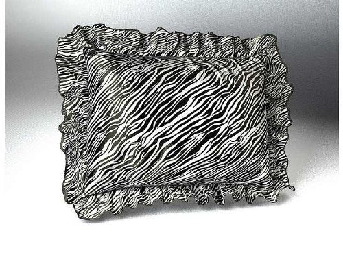 Black/White Zebra Print Satin Ruffled Pillow Sham, Queen Review